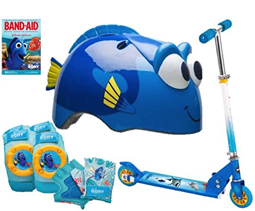 -. Title : Dory Two Wheel Kick Scooter 10 pc Set, Helmet, Knee Pads, Elbow Pads, Gloves & Dory Band-Aids for lots of Summer Fun, Bundle Huffy Pixar