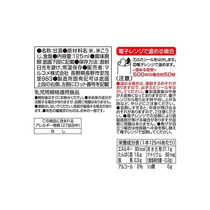 원본상품명: マルコメ プラス 米からつくった甘酒 125ml×18本