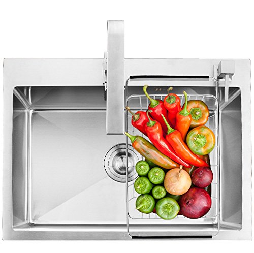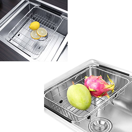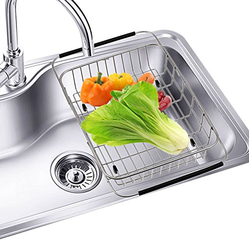 GTHUNDER Over Sink Basket Dish Drying Rack Stainless steel Kitchen organizer Strainer Dish Drainer with Adjustable Arms Holder Drying Organizer for Vegetable Fruit