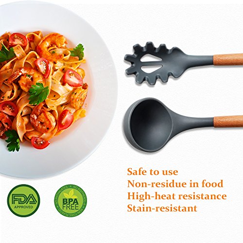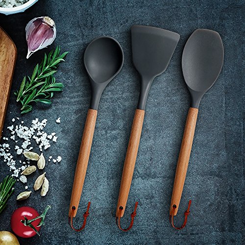 * The silicone heads would endure temperature changes from -40℉ - 446℉. * NOT recommended for use in dishwasher. * Never soak the wooden handle in water for long times which may result in cracks.