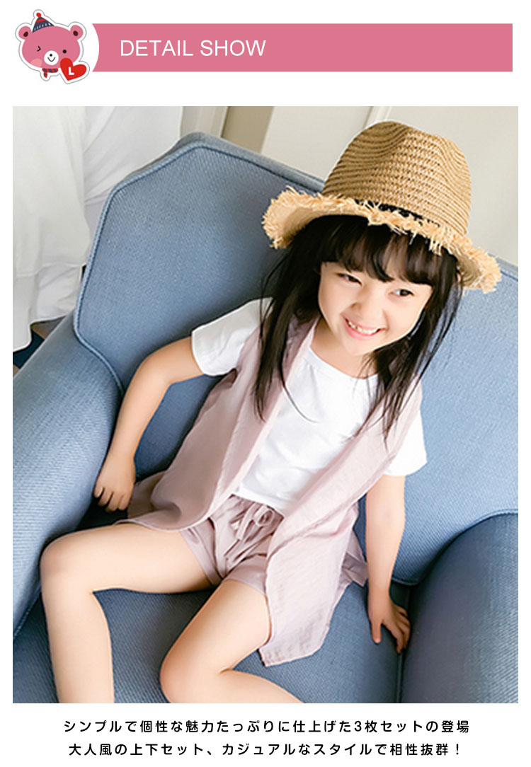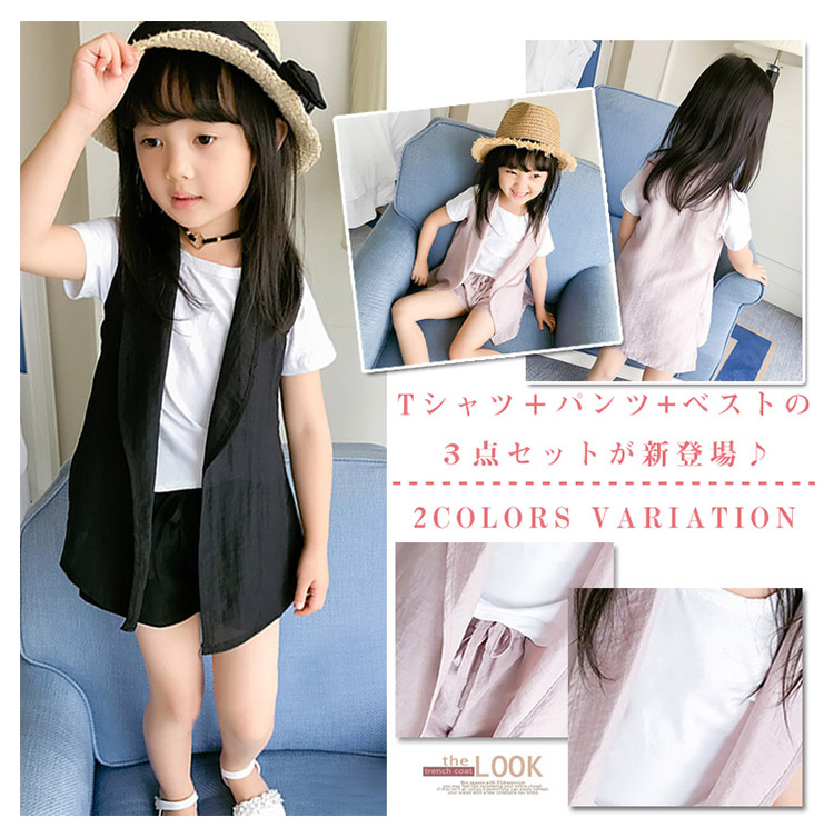 | Tシャツ+パンツ+ベストの3点セットが新登場♪ 肌触りの優しい素材で、子供のお肌に負担をかけません♪シンプルで可愛さが溢れるセット♪ | |