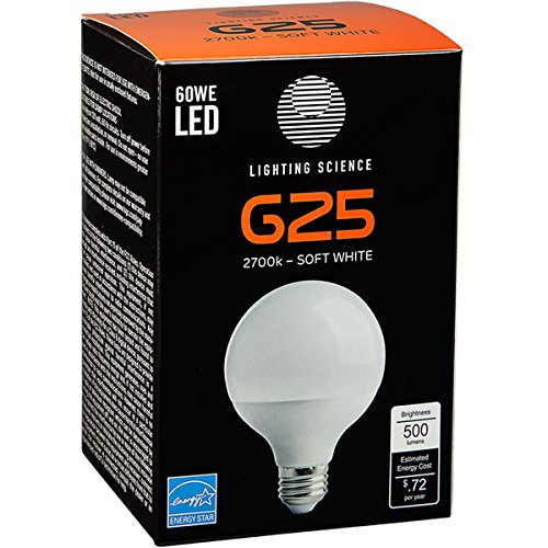 Lighting Science Decorative Frosted Globe Vanity Light Bulbs, Round, G25, E26 Base, 60 Watt Equivalent Soft White 6-Pack