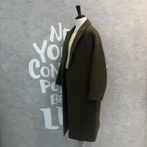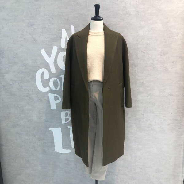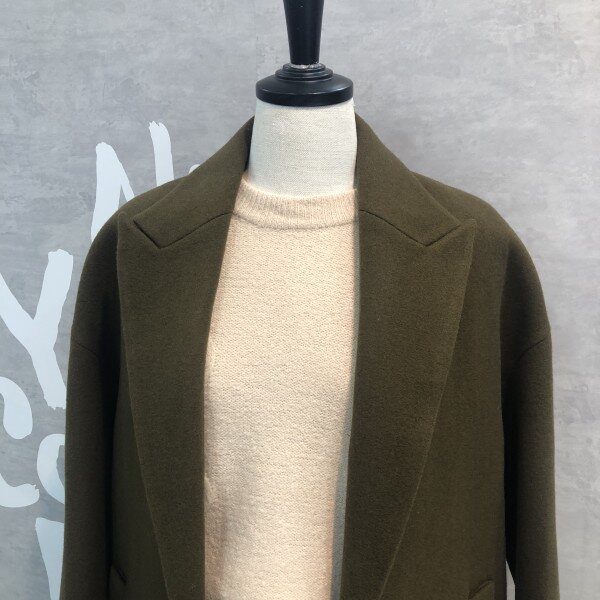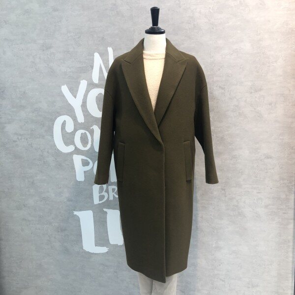 드롭 숄더의 부드러운 실루엣이 돋보이는 울 블렌드 소재의 숄리드 코트입니다