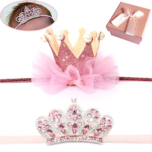 Elesa Miracle Baby Hair Accessories Baby Girl's Gift Box Shiny Tiara Crown Headband Set