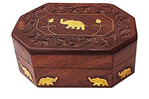 Wooden Octal Shape Single Elephant Wooden Box, Storage Box, Wooden Keepsake Storage Box