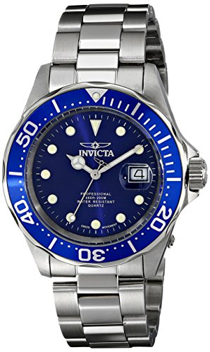 -. Binding : Watch -. Brand : Invicta -. Color : Silver-Tone/Dark Blue -. Department : mens -. EAN : 0886678208715 -. Feature : Magnified date window at 3:00 / Blue dial with silver tone and pale green hands and hour markers; luminous; unidirectional stainless steel bezel with blue top ring; screw-down crown; mineral crystal; stainless steel case and bracelet / Swiss-quartz movement / Case diameter: 40mm / Water resistant to 660 feet -. Label : Invicta -. Manufacturer : Invicta -. Model : 17056 -. MPN : 17056 -. PackageQuantity : 1 -. PartNumber : 17056 -. ProductGroup : Watch -. ProductTypeName : WATCH -. Publisher : Invicta -. Size : Standard -. Studio : Invicta -. Title : Invicta Men's 17056 Pro Diver Analog Display Swiss Quartz Silver Watch -. UPC : 886678208715