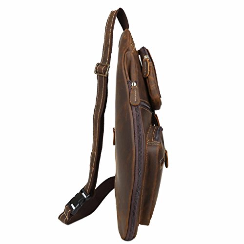 -. Title : Men's Chest Pack Crossbody Bag Vintage Leather Shoulder Sling Bag Rucksack