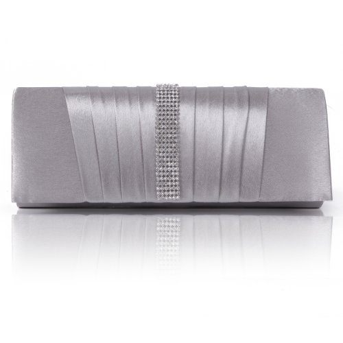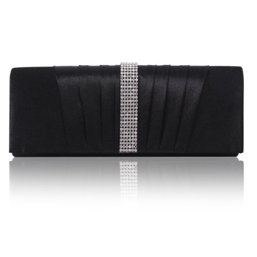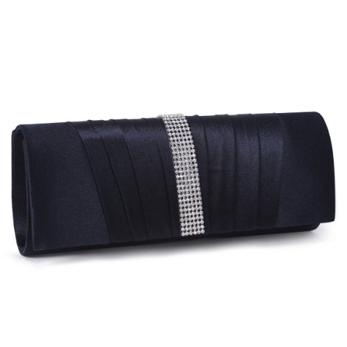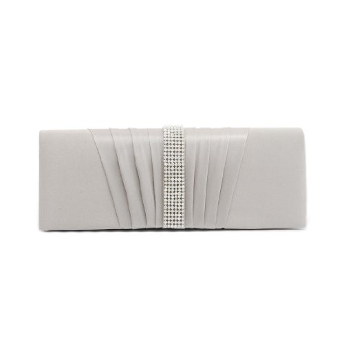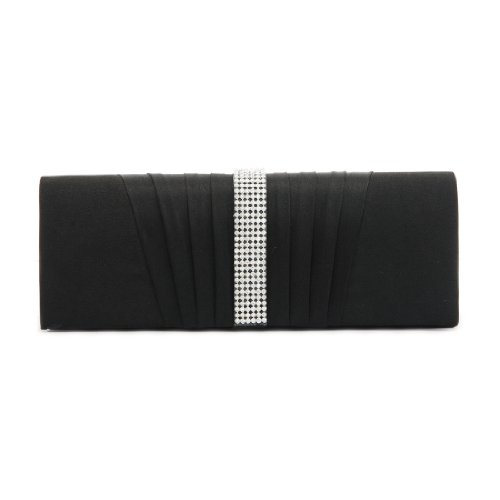 -. Brand : Damara -. Department : womens -. Feature : Perfectly pleated satin fabric / Magnet snap closure / Front rhinestone,Interior slip pocket / Dimensions:8" x 3.6" x 1.5" / A detchable strap silver chain with 21" drop,can be use as a shoulder bag or crossbody bag -. ProductGroup : Shoes -. ProductTypeName : HANDBAG -. Title : Damara Womens Pleated Satin Crystal Fashion Clutch Evening Bag