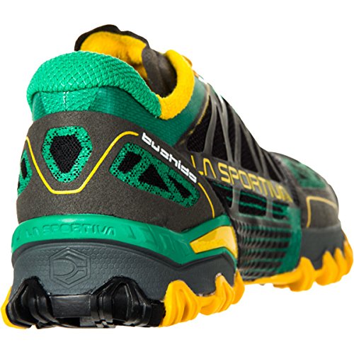 Studio : La Sportiva Publisher : La Sportiva Binding : Misc. Product Description Stable, lightweight, sticky and aggressive; the Bushido is designed for performance on technical terrain by providing stability thanks to "STB Control" construction: a new concept in mountain running shoes. Internal slip on construction fits the foot like a sock without causing excessive pressure. Outsole lugs have rounded edges and wrap over the midsole to provide traction and enhance stability on technical terrain. "STB Control" TPU frame on upper wraps over the midsole to stabilize the foot, provide a more snug fit, and enhance stability. This system provides a more precise fit and greater stability thanks to the upper and midsoles working together in perfect synergy. The weight of the shoe is also reduced by avoiding the insertion of heavy stabilizers in the central part of the shoe. The external lugs have a rounded edge and rise laterally around the midsole. This creates a continuous touchpoint with the ground, maintaining stability on technical terrain; roots, stones and branches. FriXion® La Sportiva's proprietary sticky climbing rubber formula that can be injection molded to make lugged outsoles or die cut from extruded sheets. Impact Brake System (I.B.S.) A proprietary technology in outsole design where the lugs of the soles are oriented in opposing slanted directions. This opposition increases braking power by an average of 20% and decreases impact forces by and average of 20%. MEMlex A compression molded midsole of 80% EVA and 20% SBR that provides a firm, cushioned midsole that is very lightweight. 0
