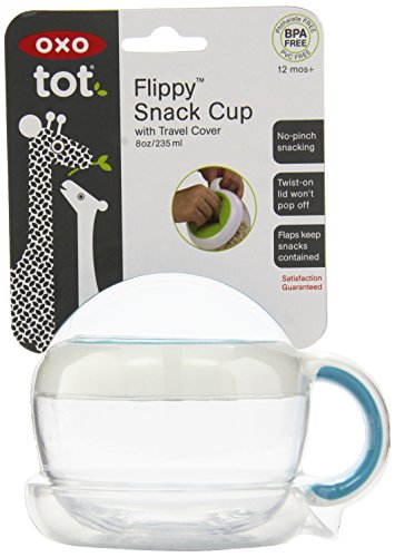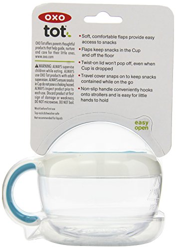 -. Binding : Baby Product -. Brand : OXO -. Color : Aqua -. Department : baby-boys -. EAN : 0719812931401 -. Feature : Soft, comfortable flaps provide easy access to snacks / Flaps keep snacks in the Cup and off the floor / Twist on lid won't pop off, even when Cup is dropped / Travel cover snaps on to keep snacks contained while on the go / Non slip handle conveniently hooks onto strollers and is easy for little hands to hold -. Label : OXO -. Manufacturer : OXO -. Model : 6114000 -. MPN : 6114000T1UK -. PackageQuantity : 1 -. PartNumber : 6114000T1UK -. ProductGroup : Baby Product -. ProductTypeName : BABY_PRODUCT -. Publisher : OXO -. ReleaseDate : 2012-01-01 -. Size : 18 months -. Studio : OXO -. Title : OXO Tot Flippy Snack Cup with Travel Lid - Aqua -. UPC : 719812931401