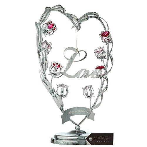 Chrome Plated Silver Happy Birthday Table Top Ornament w/ Matashi Crystals Love Ornamental | Keepsake and Décor | Gorgeous Decoration