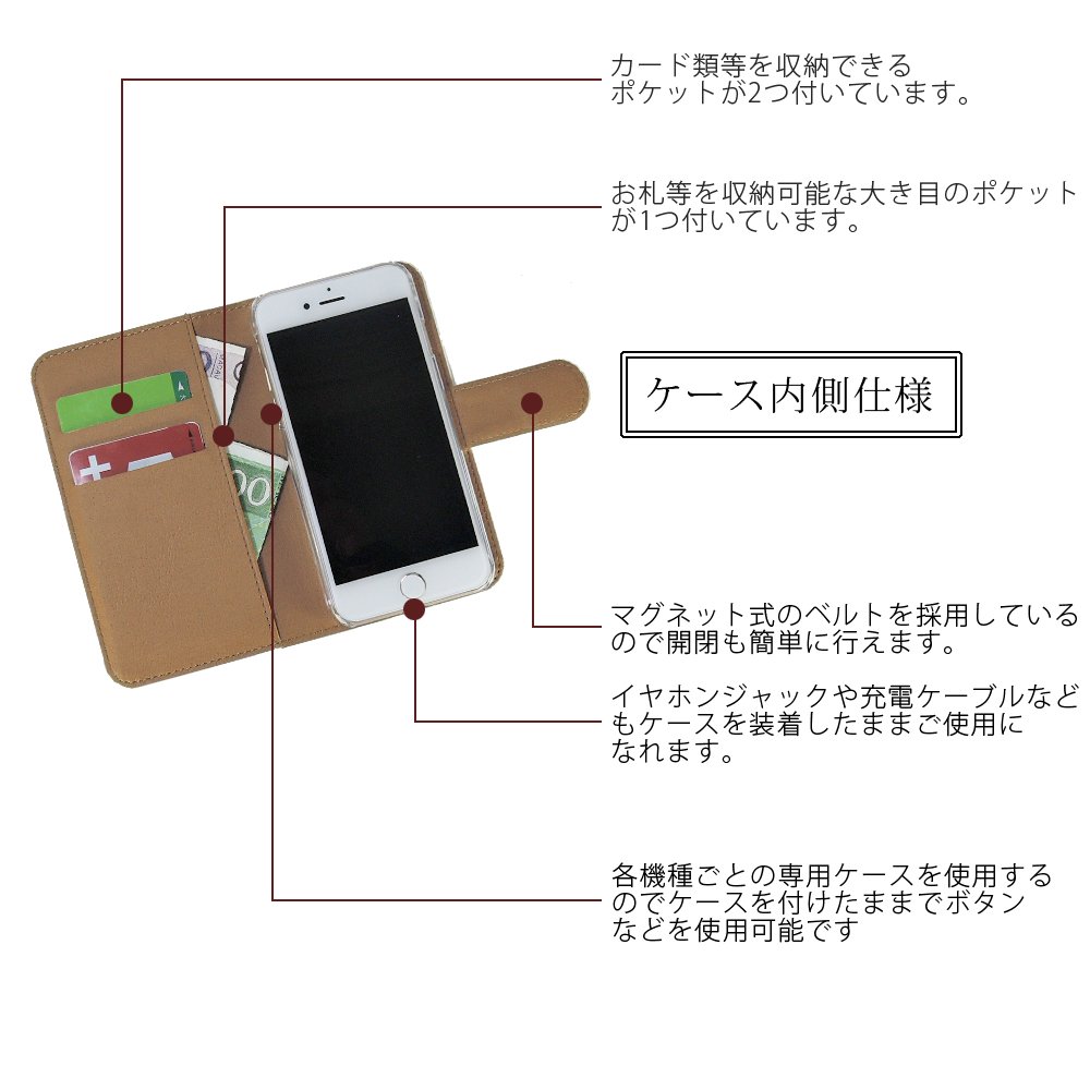 · The inner case provided inside is firmly fixed with a poly hard case dedicated to each model, and it protects the smartphone from impacts, scratches, dust, etc.