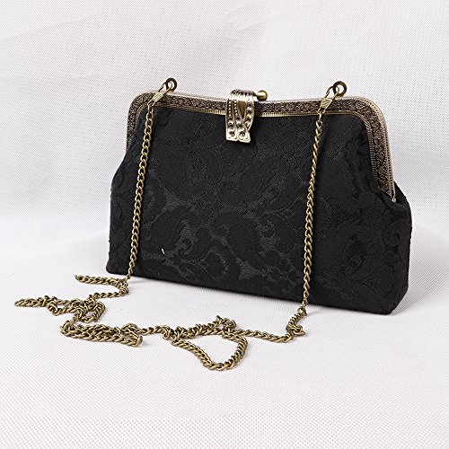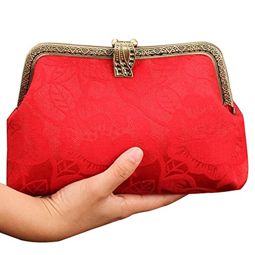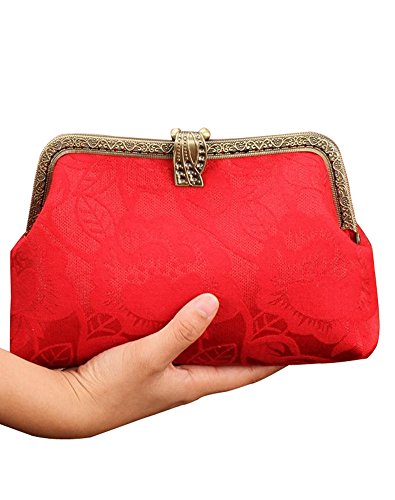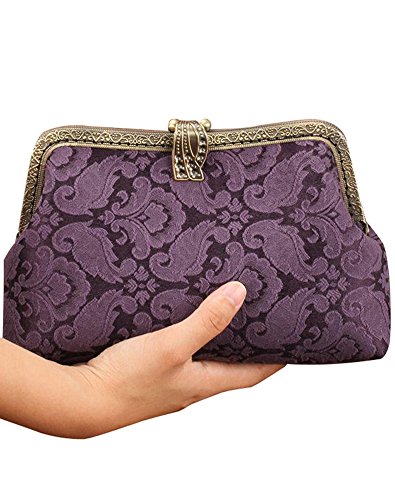 | Musebridal Women's Vintage Handmade Floral Cloth Clutch Handbag Purse with Detachable Chain |