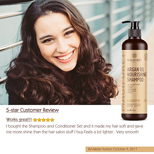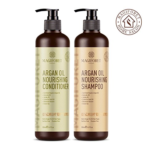 - Reshape and recondition Your Life with MagiForet Organic Argan Oil Shampoo & Conditioner Sets – They are high quality nourishing and natural shampoo and conditioner. They detangle, shine and correct dry, damaged hair, making your hair soft, smooth, shiny, tangle free and manageable. The feather weight formula with protective sunscreen helps repair and strengthen your hair. And the beautiful scent lasts for whole day long.