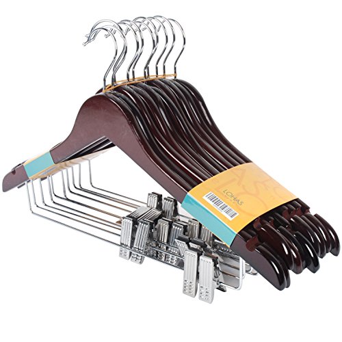 -. Title : LOHAS Home Solid Walnut Finish Wooden Suit Hangers with Anti-rust Pant Clips, Pack of 10