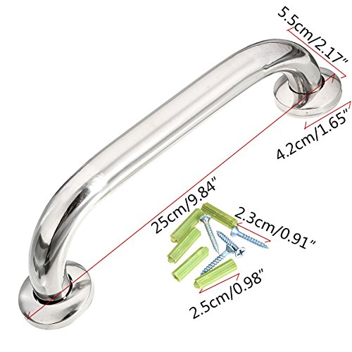 Studio : KINGSO Publisher : KINGSO Product Description Features: 4 sizes choices can meet your choices. To keep your families safe, give you stability and reassurance in the bathroom. It is convenient to install, can attached to the wall firmly and have strong weight capacity. Material:Stainless Steel Color: Silver Size:10inch,17inch, 21inch, 25inch Packing Includes: 1 x Bath Toilet Armrest 1 Set Install Accessories Note: 1,Suggest cleanse with a cleaning agent, such as soap, and water regularly. To Keep it bright and clean. 2,Don't clean it with organic solution and chemical agent, for fear destroy the surface of the goods. 3,Suggest punch by 6 mm electric drills. 0