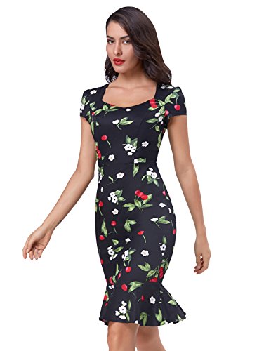 Little Elastic, Bodycon, Cut-out Neck, Cap Shoulder, Back Zipper, Fishtail Design