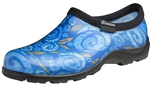 Studio : Sloggers Publisher : Sloggers Binding : Lawn Patio Product Description Step into the spring with our Sloggers - made in the USA - rain garden shoes in new floral Prints. Whether you're working in the garden, running errands around town on a rainy day, or just out walking the dog in the morning dew, you'll feel comfortable secure in these fun, waterproof shoes. They included our exclusive "All-Day-Comfort-Insoles", the main reason why Sloggers boots shoes receive such high comfort praise, our signature "Deep-Lug-Tread" for excellent traction in water mud. We use a Soft, flexible upper material made from odorless, medical grade, 100% recyclable plastic, our soles contain up to 50% recycled material Sizing info: half sizes order up, for a "perfect fit", order our Half-Size Cut-To-Fit Insole (style 330BK) to make any Sloggers boot or shoe 1/2 size smaller. Proudly made in the USA from 100% recyclable material, when they are all worn out, return them to us we'll make them into another shoe! how is that for "reuse recycle". for more information on our recycling program, please visit our website. 0