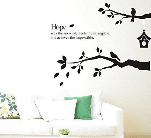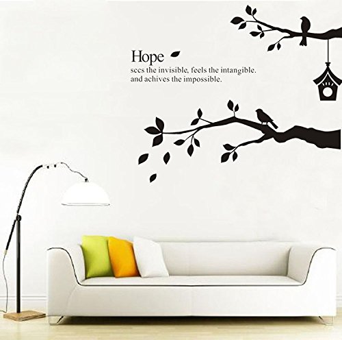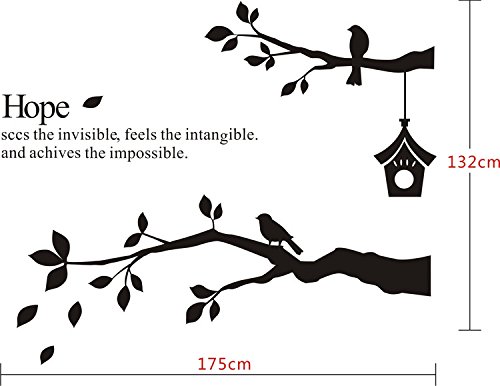 CaseFan Kid Baby Nursery Brids on Tree Branches Wall Sticker Vinyl Removable for Home Mural Paper DIY Decals 68.9x52",Black