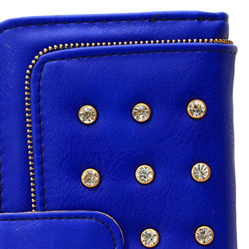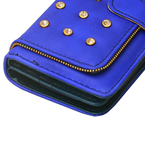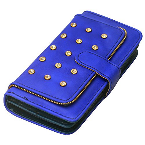 - Title : Women's Waxy Genuine Leather Long Wallet Clutch Purse Handbag Card Holder Case with Coin Zipper Pocket Studded Diamont Button Ornament Bag