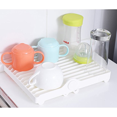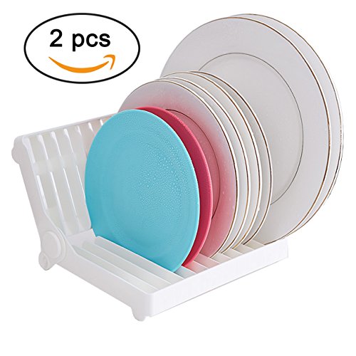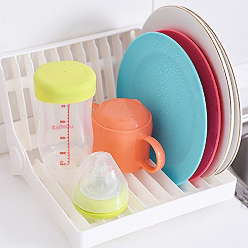Ogrmar Plastic Foldable Space Saving Dish Drainer Rack for Kitchen Sink/ Compact Modern Fold Away Dish Dryer Rack Pack of 2 (White)