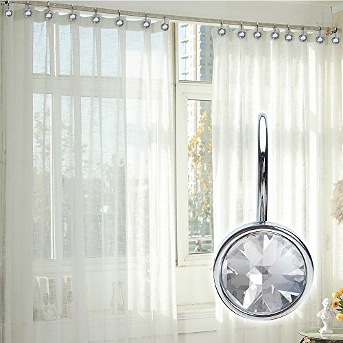 Shower Curtain Hooks, AGPtek 12 PCS Home Decorative Artificial Crystal Shower Curtain Hooks Fashion Rustproof for Interior Decoration (White)