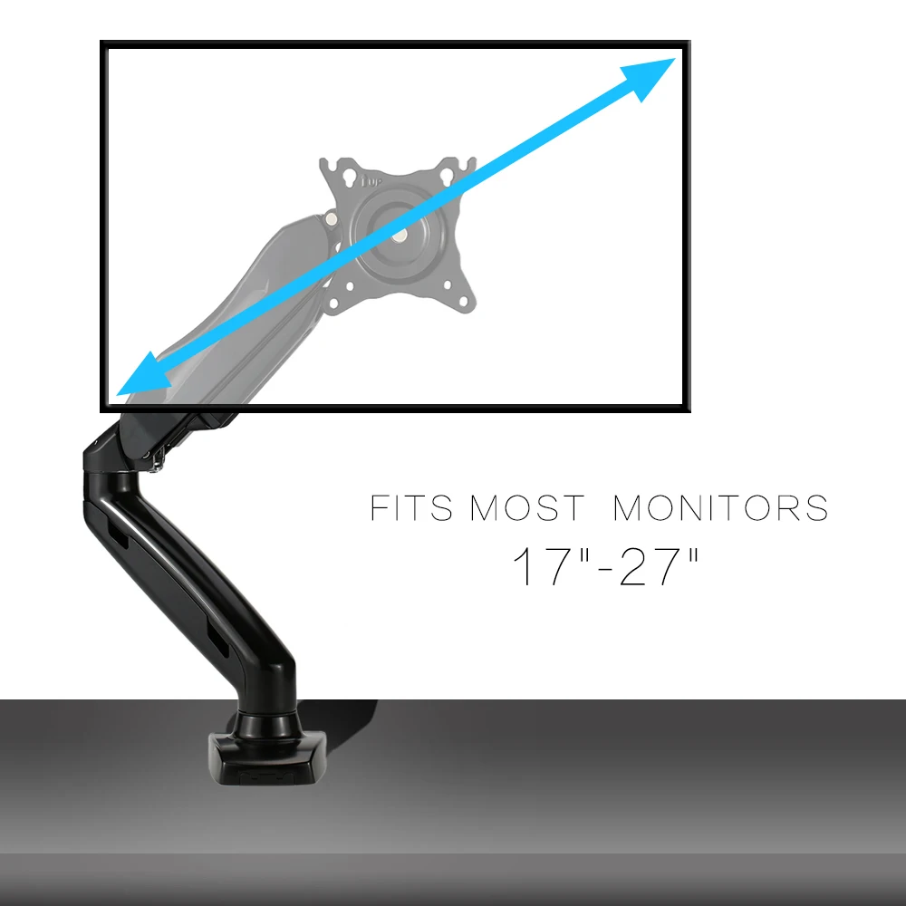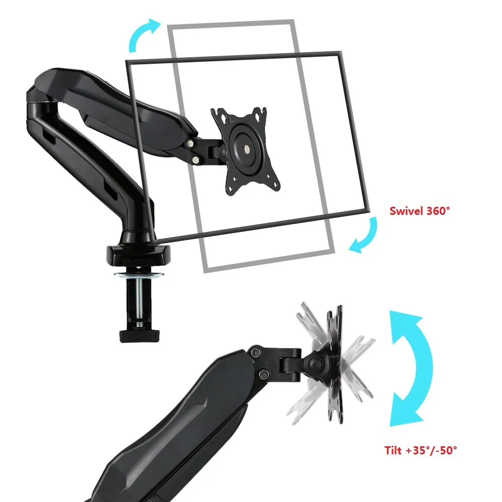 360 Degree Gas Spring 12"-27" Monitor Holder Arm NB F100 TV Mount Desktop Clamping Or Grommet With USB And Audio Interface