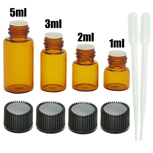 40pcs Essential Oils Bottles with 2pcs Plastic Transfer Pipette, Doubletwo Amber Glass Vials Bottles 1ml 2ml 3ml 5ml Mini Bottles for Essential Oil