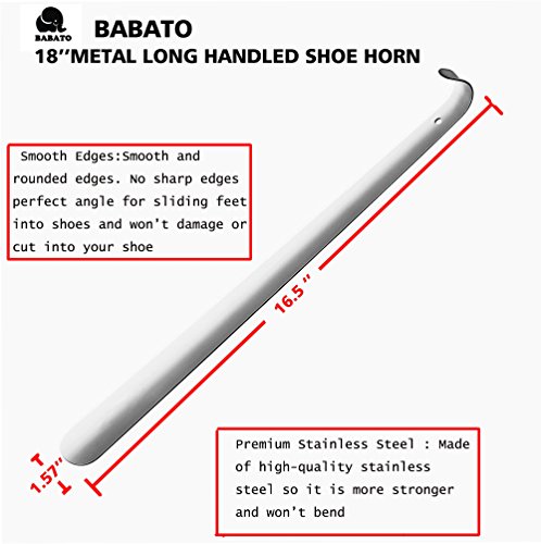 • 16.5 "Length: Please note that this insole is made of an 18 inch steel and then has a curved handle so that the actual usable length is about 16.5", with most other "18 inch" shoe horns poles on the market.