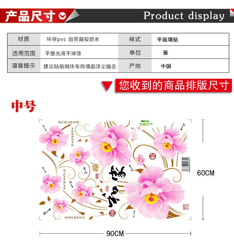 简约现代花朵墙贴纸 温馨卧室电视背景墙装饰贴花浪漫环保贴纸