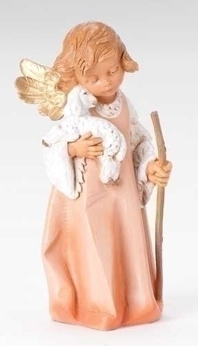 8" Woodtone Little Shepherd Angel with Lamb Figurine