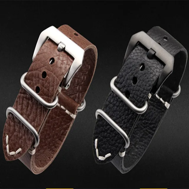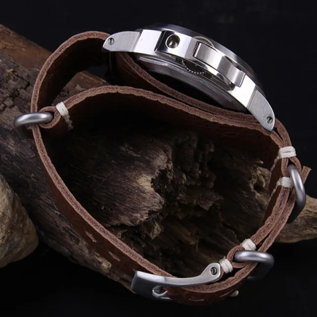 | [해외]수제 24 미리메터 미친 말 가죽 블랙 브라운 손목, 나토 망 거친 가죽 시계 스트랩 PAM 큰 시계 |