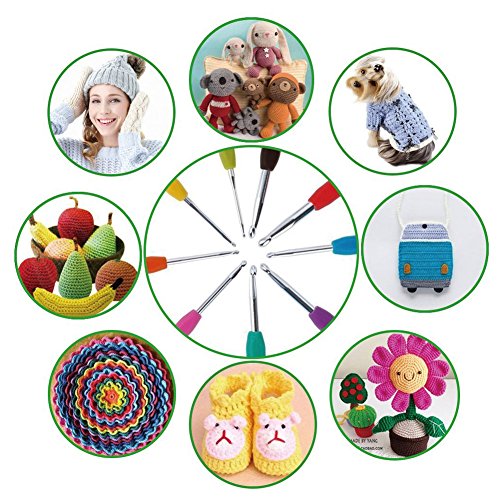 This is a Extremely Comfortable Crochet Set made from the highest quality aluminum and brightly colored silicon grips handles. The silicon grips handle provides EXCEPTIONAL comfort when crocheting for long period of time.