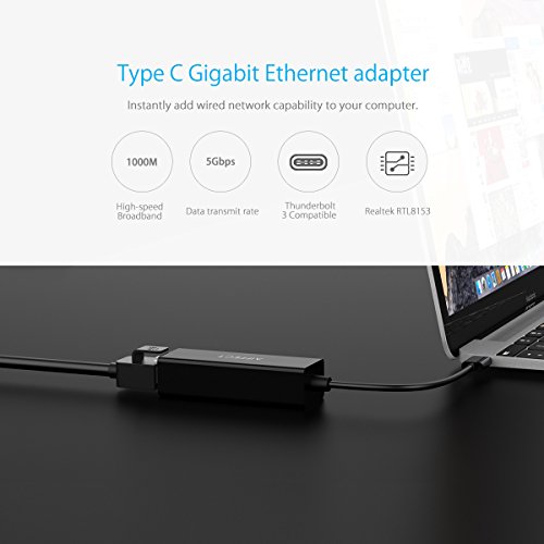 USB C to Ethernet Adapter adds network connectivity to a computer with a USB Type C port
