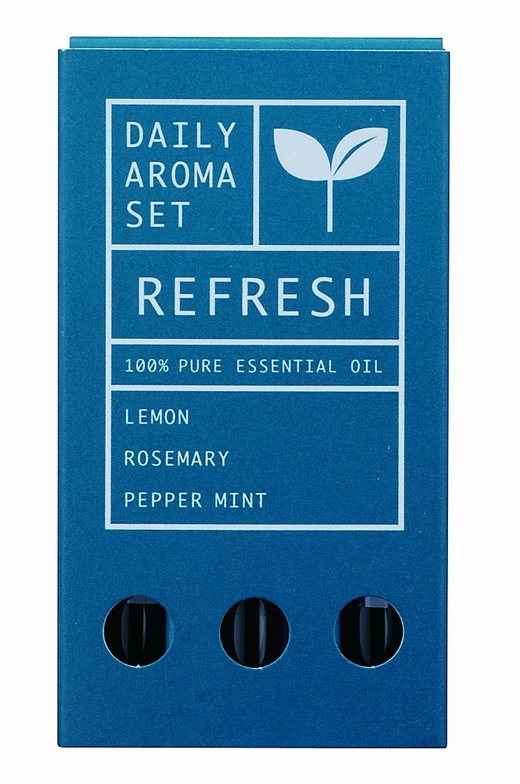 "Daily Aroma Set Refresh 1.5ml * 3" is a set of three essential oils that are perfect for when you need concentration or memory, or when you want to change between work, study and driving.