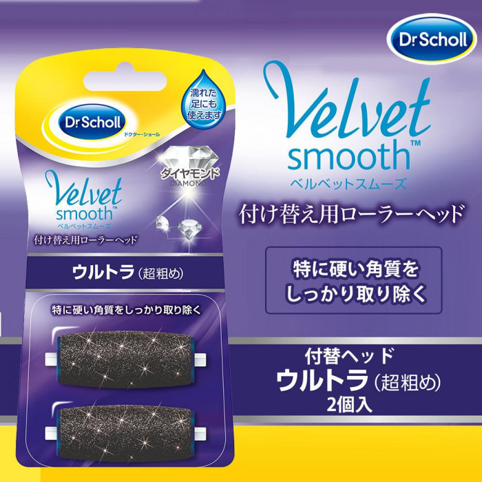 ローラーヘッドが電動で回転し、足裏全体の硬い角質をやさしく、スピーディーに除去できる電動角質リムーバーの、付け替え用ローラーヘッド「ウルトラ(超粗めタイプ)」2個入りです。ベルベットスムーズ ダイヤモンドエキストラ(ピンク色)の他、ベルベットスムーズ ダイヤモンド(青色)本体にもご使用いただけます。ローラーヘッドは水洗い可能なので、衛生的!! |