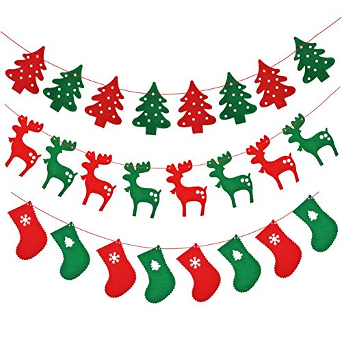 Youbedo Merry Christmas Bunting Banner Flag Christmas Party Decoration Christmas Banner Elk, Tree, Stockings Christmas Holiday Ornament 3 Sets