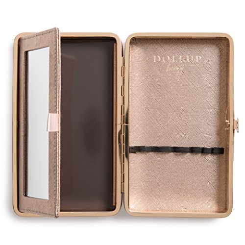 Dollup Essential Clutch Makeup Case and Organizer (Rose Gold) - Features Empty Magnetic Palette, Foldaway Vanity Mirror, and Elastic Holding Bands...