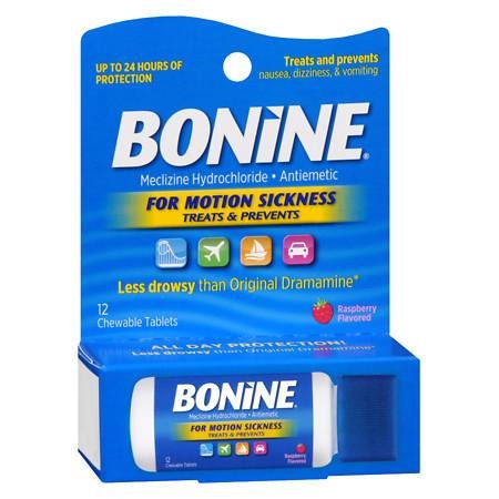 Product DescriptionBonine Chewable Tablets for Motion Sickness Raspberry0