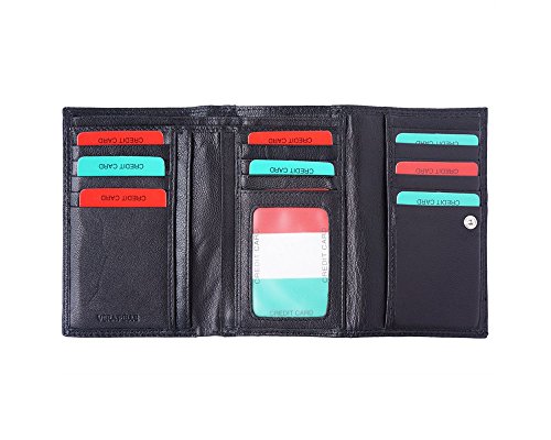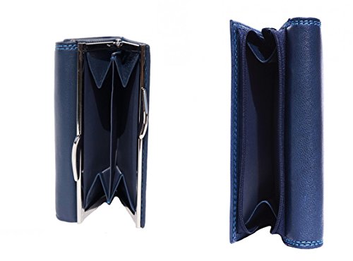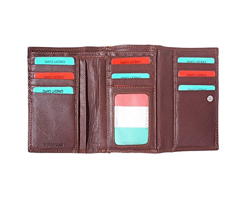 -. Feature : Genuine leather wallet made with exquisite Italian workmanship features trifold clip-on design / Handcrafted in Florence, Italy - capital of best quality leather craft, home to masterpieces of design / Small: 5 credit card slots, 3 hidden slots, 1 ID slot, Cash compartment, Coin snap-on compartment / Large: 14 credit card slots, 5 hidden slots, 1 ID slot, 2 Cash compartments, Coin compartment with zip closure / Double stitching. Hand-sewn seams.