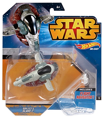 -. Binding : Toy -. Brand : Hot Wheels -. EAN : 7662558139712 -. Feature : Kids will love this assortment of iconic Star Wars vehicles / Flight Navigator lets kids "fly" their starships / Flight Navigator doubles as a display stand so kids can show off their collection / In a collectible scale that's small enough to fit in a pocket / Makes a great gift for fans of all ages -. IsAdultProduct : 0 -. ItemPartNumber : CKJ63 -. Label : Hot Wheels -. Manufacturer : Hot Wheels -. Model : CKJ63 -. MPN : CKJ63 -. PackageQuantity : 1 -. PartNumber : CKJ63 -. ProductGroup : Toy -. ProductTypeName : TOYS_AND_GAMES -. Publisher : Hot Wheels -. ReleaseDate : 2015-03-01 -. Studio : Hot Wheels -. Title : Hot Wheels Star Wars Starship Boba Fett Slave I Vehicle -. UPC : 887961127973 -. Warranty : 1 year warranty against manufacturer defects