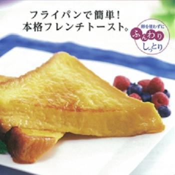 フライパンで簡単! 卵を使わずに、ふんわりしっとりとした本格的なフレンチトーストが簡単にできあがります。あっという間にしみ込みますので、短時間でしかも失敗しません。食パン1枚分の使い切り小袋が2袋入っています。キャラメル&シナモン風味で、そのままでもおいしくお召しあがり頂けますが、お好みで、フルーツやホイップクリーム、ジャムを添えるとより一層おいしく召しあがれます。