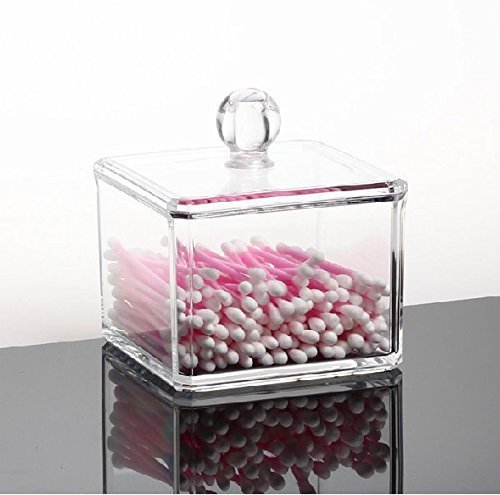 GLODEALS Transparent Square Clear Acrylic Holder Box Cotton Swabs Stick Storage Cosmetic Makeup Case Cotton Ball Holder Organizer(one)