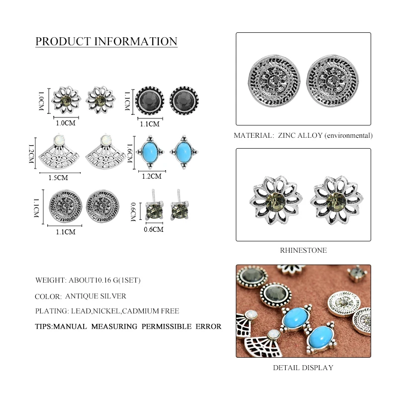 Europe Vintage Stud Earring Sets:Women Earrings for Gift