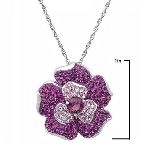 Purple Fade Flower made with Swarovski crystals in the chic flower pendant set in sterling silver on an 18 inch sterling silver chain.