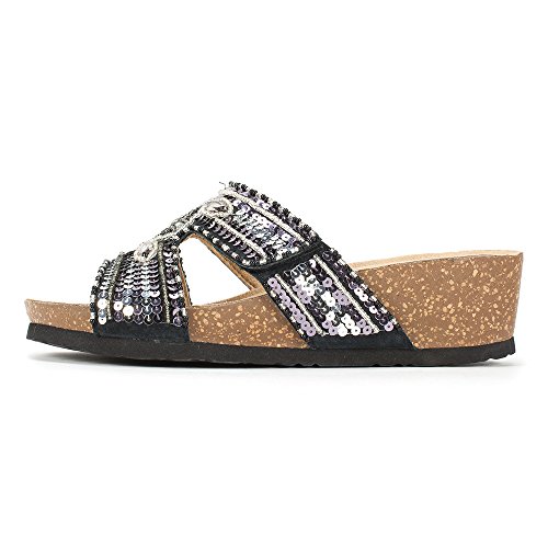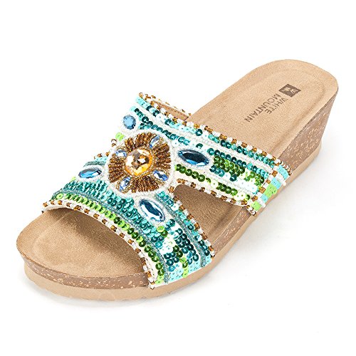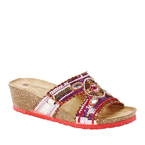 Open toe wedge sandal with jute covered bottom and adjustable ankle strap buckle. Diamonds are a girl's best friend so why not add some sparkle to your sandals? Circular and tear drop shaped stones are the inspiration for it's moniker. Heel height:2.5"