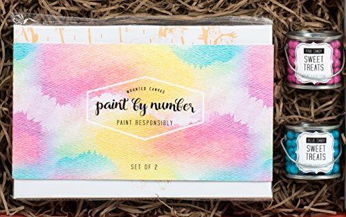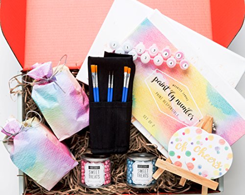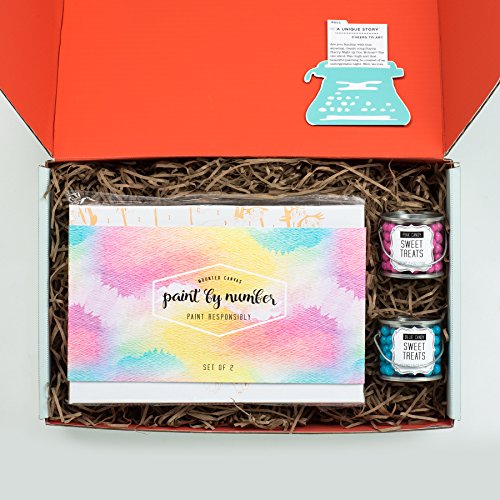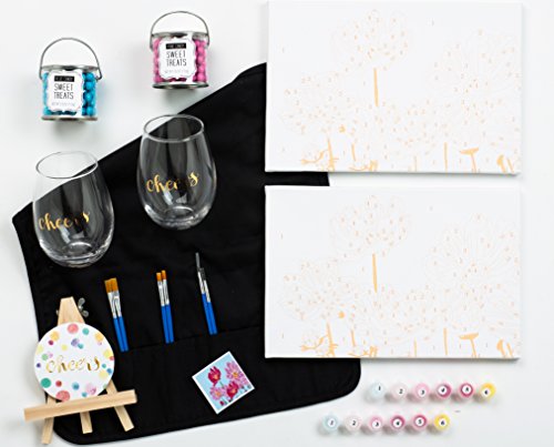 Wine & Paint Night At Home: A Thoughtfully Gift Box Containing Stemless Wine Glasses, Canvases, Paint, Paint Brushes, Candy & Easel
