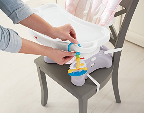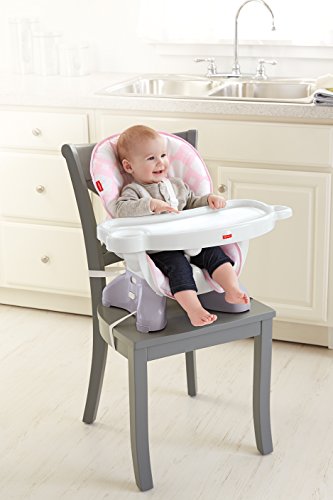 ReleaseDate : 2017-10-27 Studio : Fisher-Price Publisher : Fisher-Price Binding : Baby Product Product Description Fisher-Price SpaceSaver High Chair straps securely to just about any kitchen chair, dining chair or restaurant chair to give you and baby all the features, comfort, and convenience of a full-size high chair in only half the space. Two height adjustments and three recline positions let you customize the chair to baby's comfort. Features dishwasher-safe tray with convenient FastFinder link (hang bibs, toys and more-within easy reach.), machine-washable seat pad, and 5-point restraint-and that's not all. This baby high chair "grows" with baby from a reclining high chair seat for newborns.to an upright high chair seat for infants.to a comfortable, height-adjustable "big-kid" booster seat for toddlers. Its compact size makes it perfect for use in small spaces, or on the go. 0
