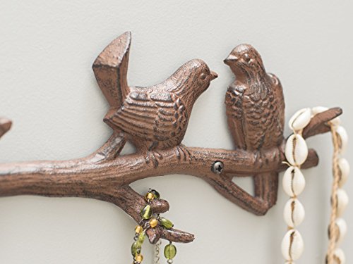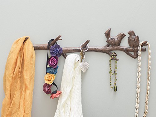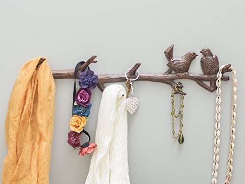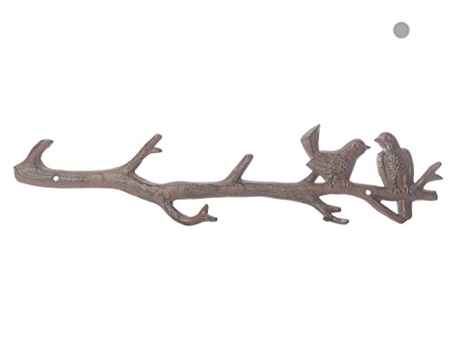 Cast Iron Birds On Branch Hanger With 6 Hooks | Decorative Cast Iron Wall Hook Rack | For Coats, Hats, Keys, Towels, Clothes | 18.5x2x4.5 - With Screws And Anchors By Comfify (Rust Brown)