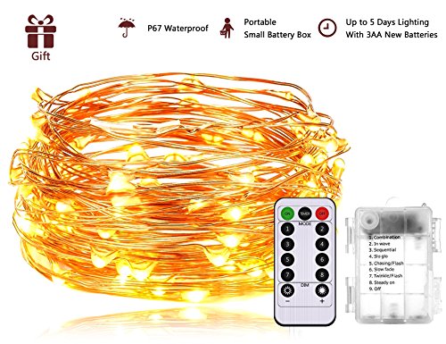 33FT 100 LED String Lights with Remote Control, WYNK Fairy String Lights for Indoor/Outdoor/Bedroom/Patio/Garden/Gate/Yard/Wedding/Parties/Christmas/Thanksgiving Waterproof Decorative Lights